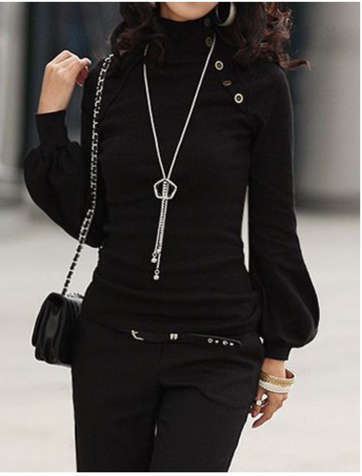 Stylish Turtle Neck w/Long Lantern Sleeve